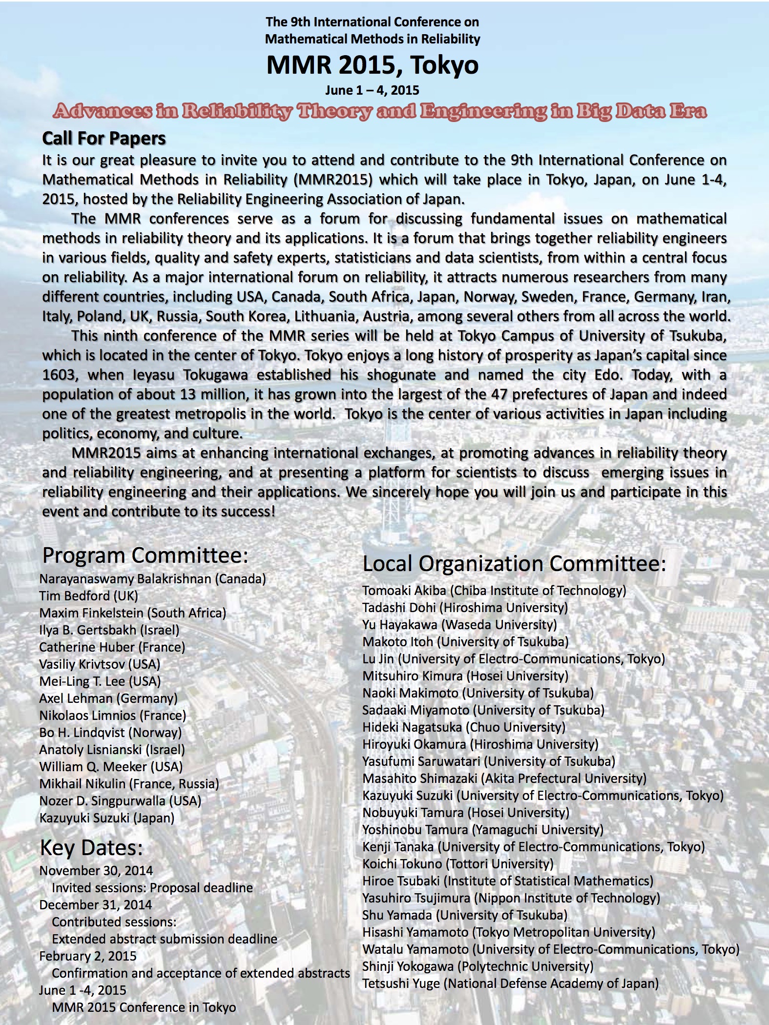 MMR 2015 - Tokyo (The Ninth International Conference on Mathematical Methods in Reliability)